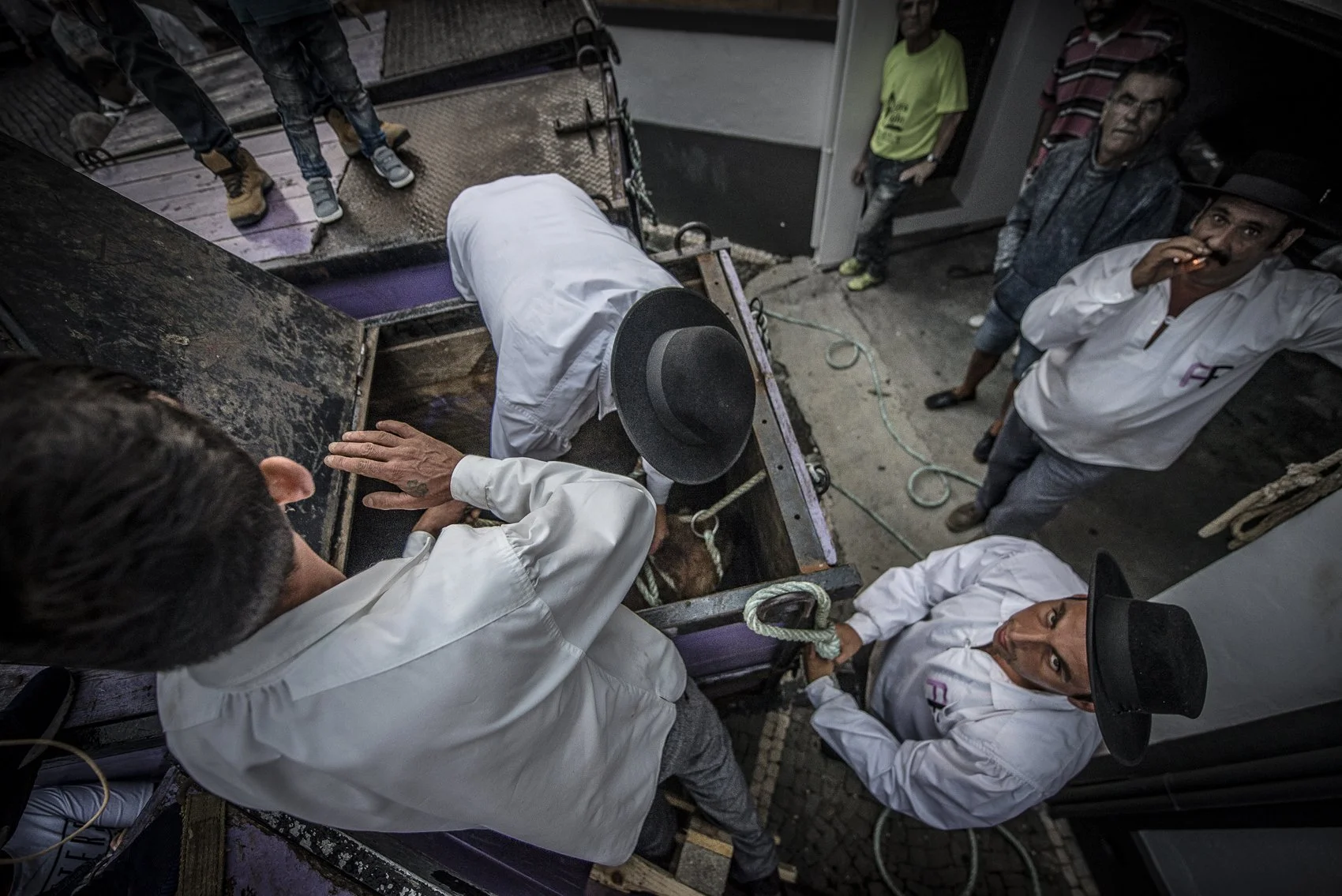 This was ‘Tourada a Corda’, a tradition exclusive to the Azores, and particularly practiced on Terceira. Bulls are set running down the street, held gently on a rope by two groups of five strong men each for security reasons.
