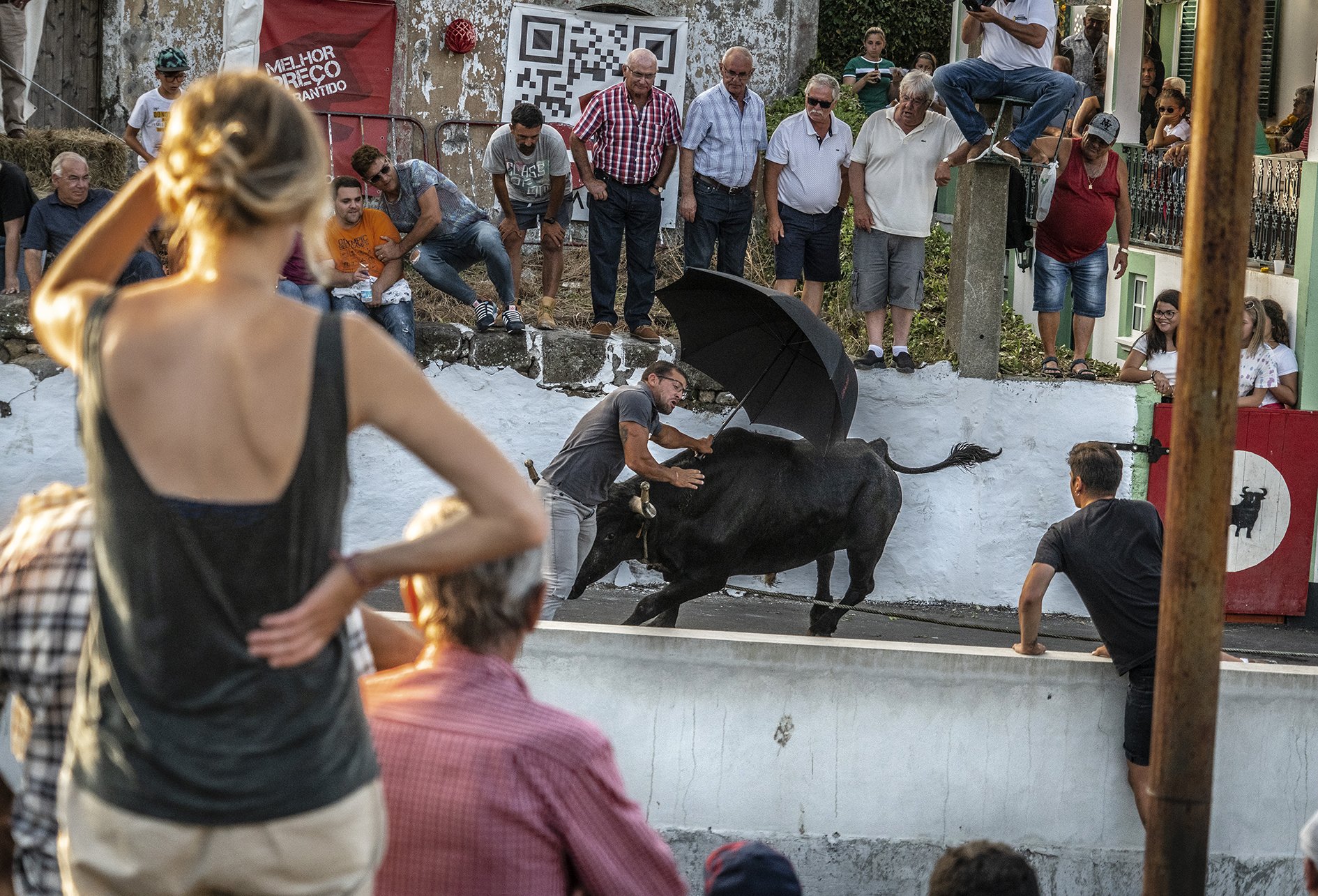 It’s not a tradition that is widely shared with tourists, as the place and time for each bull run is passed by word of mouth between locals. Most chose to stay safely behind improvised walls watching the spectacle with beer and bifana (Portuguese pork sandwiches).