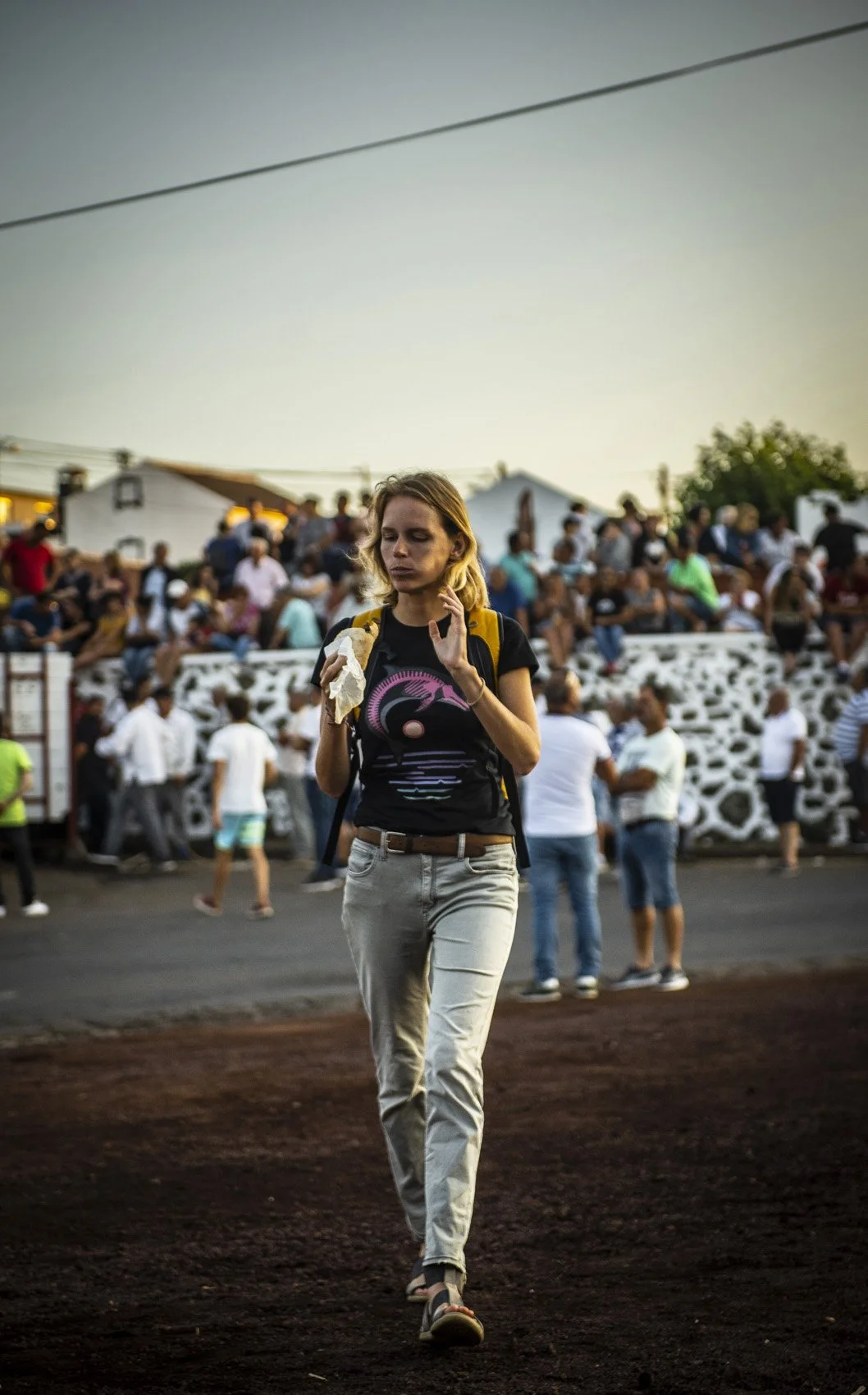 I climbed out of harm’s way onto a giant wall, intimidated by the concerned looks of the men running with the bull than the bull itself, so distressed were they at seeing a blonde woman tossed into the middle of the action. Like I was the object of the interest, not the event. Me, blonde fragile woman was in middle of the stage.